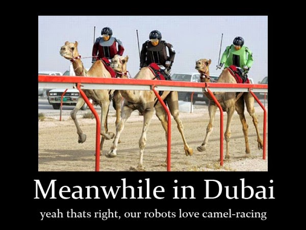 Dubai people have something very interesting and unique that is a camel race with a robot jockey riding it. this can happen only in Dubai.